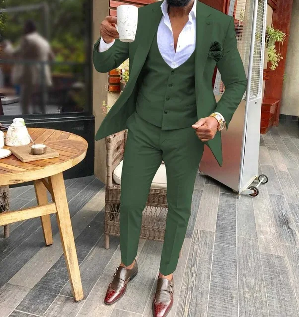 DIHOPE Male Prom Suit Green Slim Tuxedo 2Pcs Set (Jacket+Pants)